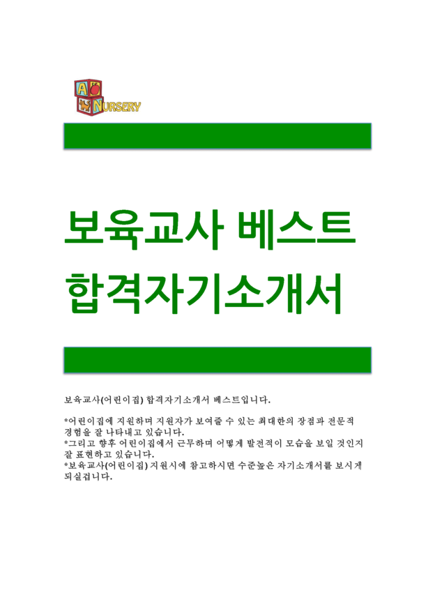 보육교사(어린이집) 합격자기소개서 베스트입니다.