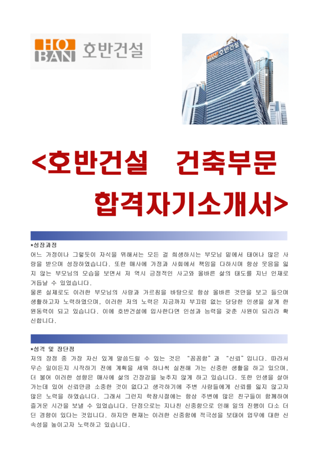 호반건설 [건축부문]채용 [최종합격] 자기소개서입니다..^^ <호반건설,호반건설자소서,호반건설자기소개서,호반건설지원동기,호반건설인턴,호반건설합격자소서,호반건설채용,건축자기소개서>