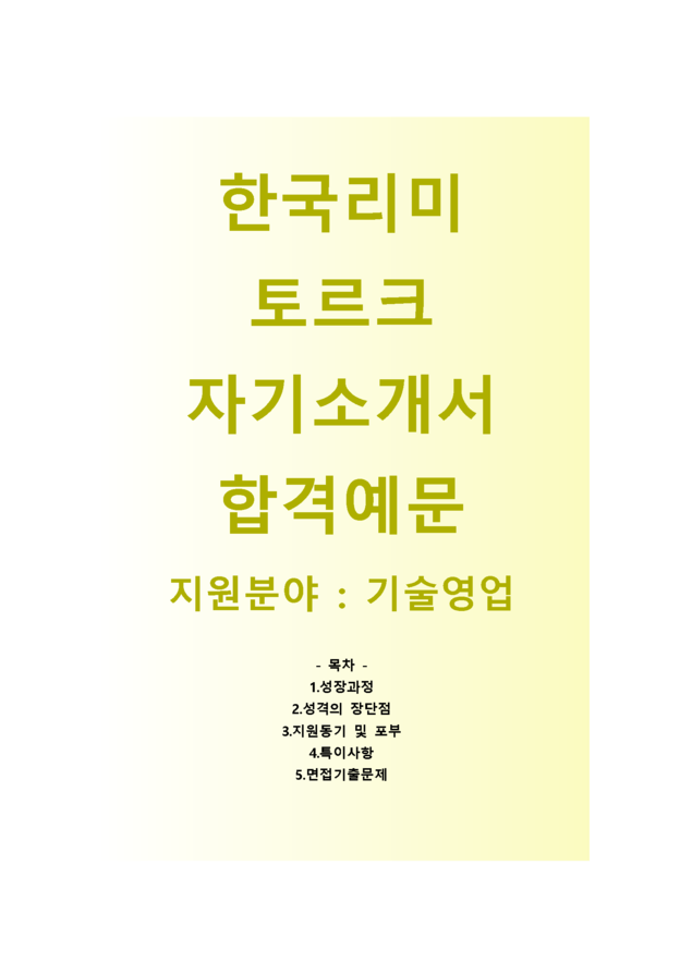 "(한국리미토르크자기소개서 + 면접기출문제) 한국리미토르크(기술영업) 자기소개서 우수예문 [한국리미토르크자소서/지원동기/첨삭항목]"에 대한 내용입니다.