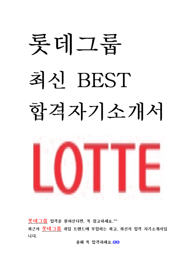 롯데그룹 인사담당자가 좋아하시는 참신한 내용을 담고 있으므로, 참고하여 작성하시면 꼭 합격하실 것으로 믿습니다.