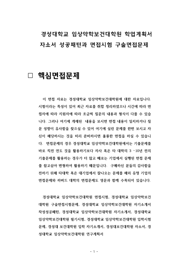 경성대학교 임상약학보건대학원 학업계획서 자소서 성공패턴과 면접시험 구술면접문제