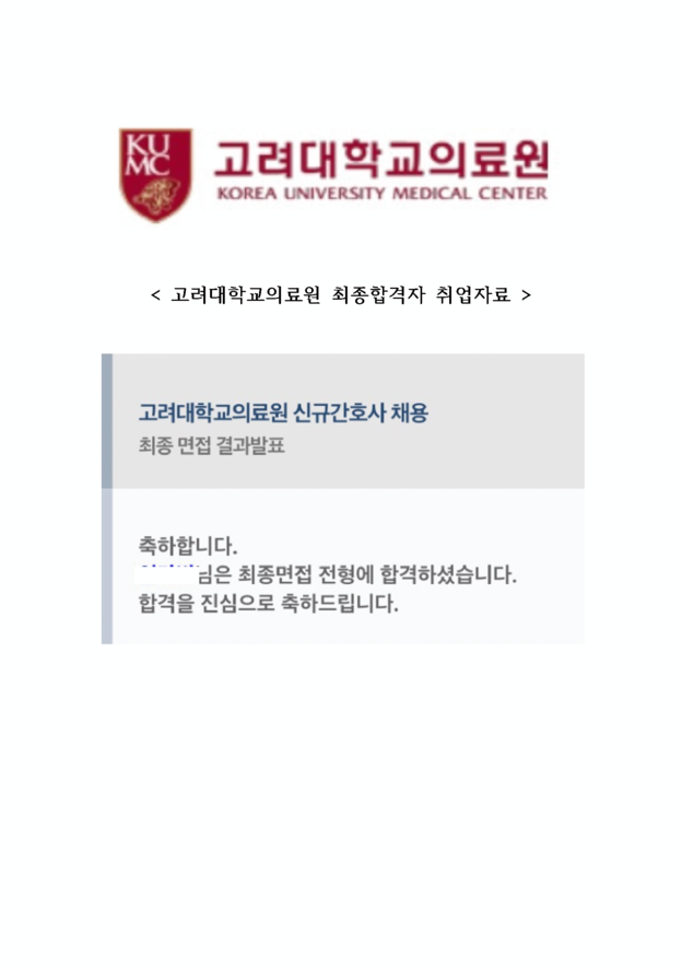 2019년 최종합격한 고려대학교 병원 면접자가 작성한 취업자료입니다.