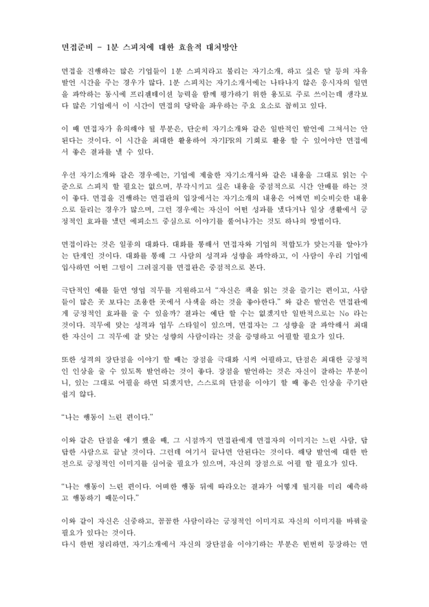 면접준비 - 1분 스피치에 대한 효율적 대처방안