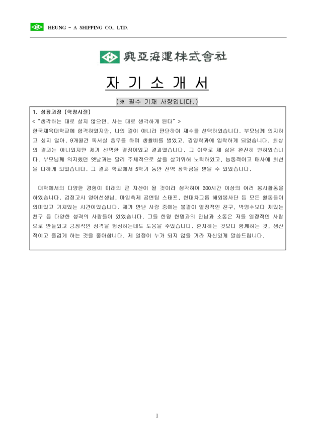 "흥아해운 자기소개서 합격"에 대한 내용입니다.