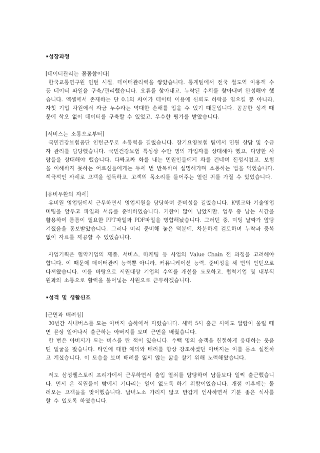 서류합격한 자소서만 올립니다. 문의 남기시면 인증 가능합니다.
