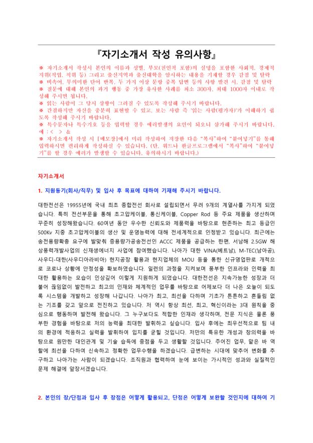 - 합격한 자소서를 베껴쓰는 것은 본인에게 전혀 도움이 되지 않습니다.