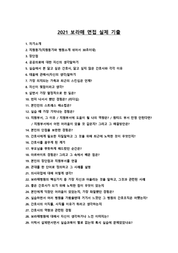 "2021 보라매 면접 실제 기출"에 대한 내용입니다.