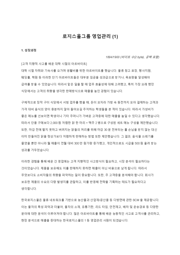 "로지스올그룹 합격자소서(한국로지스풀)"에 대한 내용입니다.
