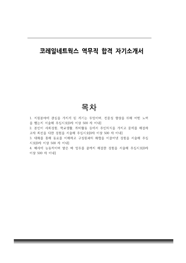 "코레일네트웍스 역무직 합격 자기소개서"에 대한 내용입니다.