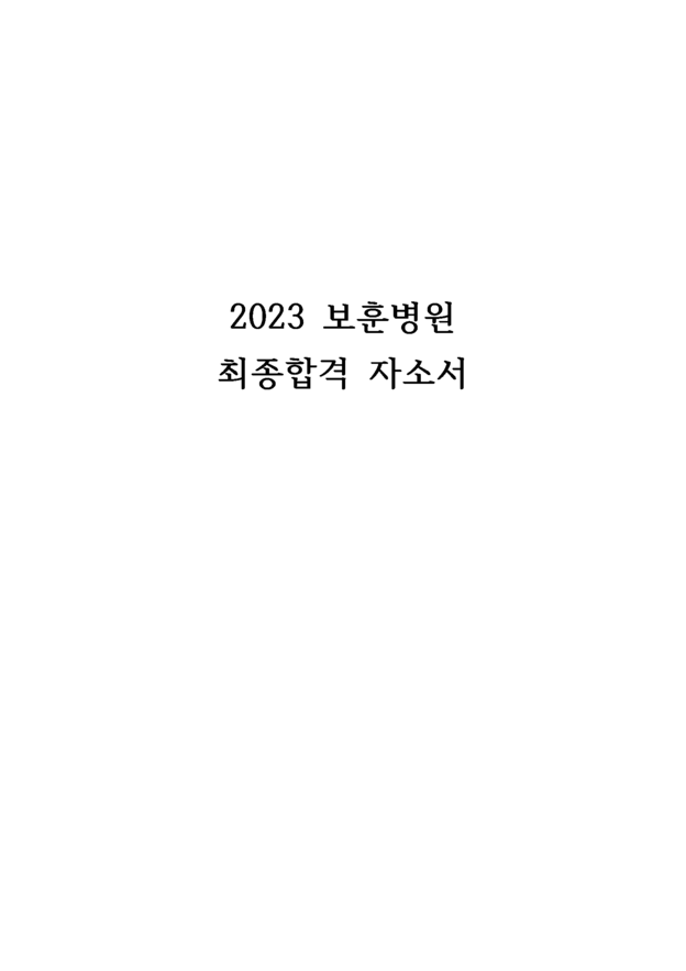 -2023 보훈병원 최종합격 자기소개서입니다.