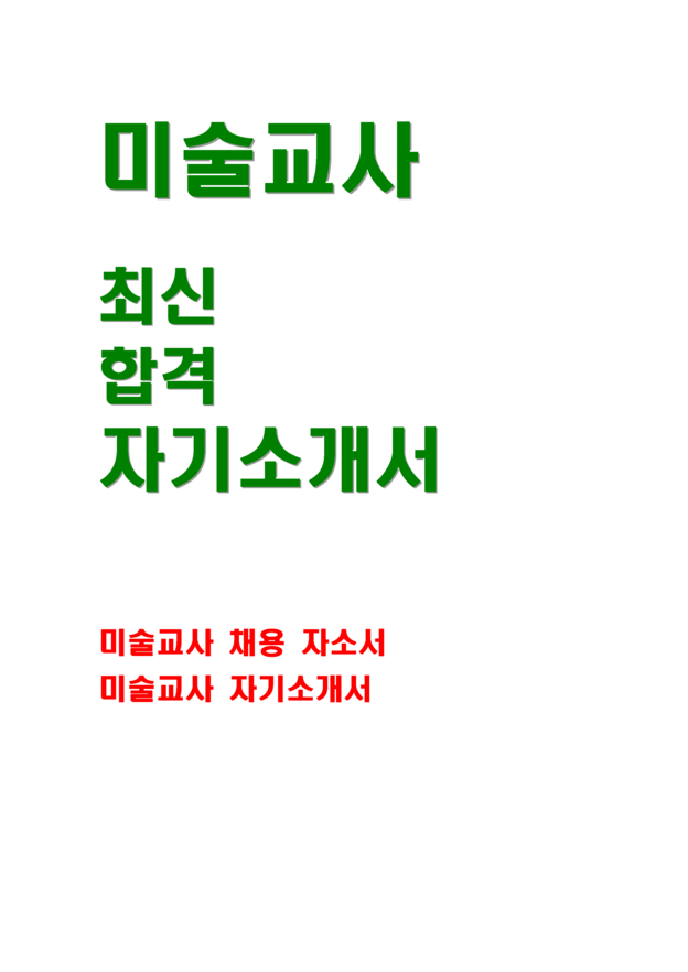◆ 이 미술교사 자기소개서는 미술교사(정규, 기간제, 강사) 지원을 위한 완벽 자기소개서(띄어쓰기 포함 3,400자로 작성) 예문입니다.