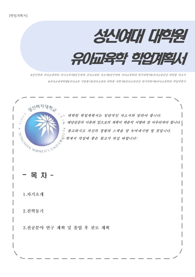 "성신여자대학교 대학원 유아교육학과 학업계획서"에 대한 내용입니다.