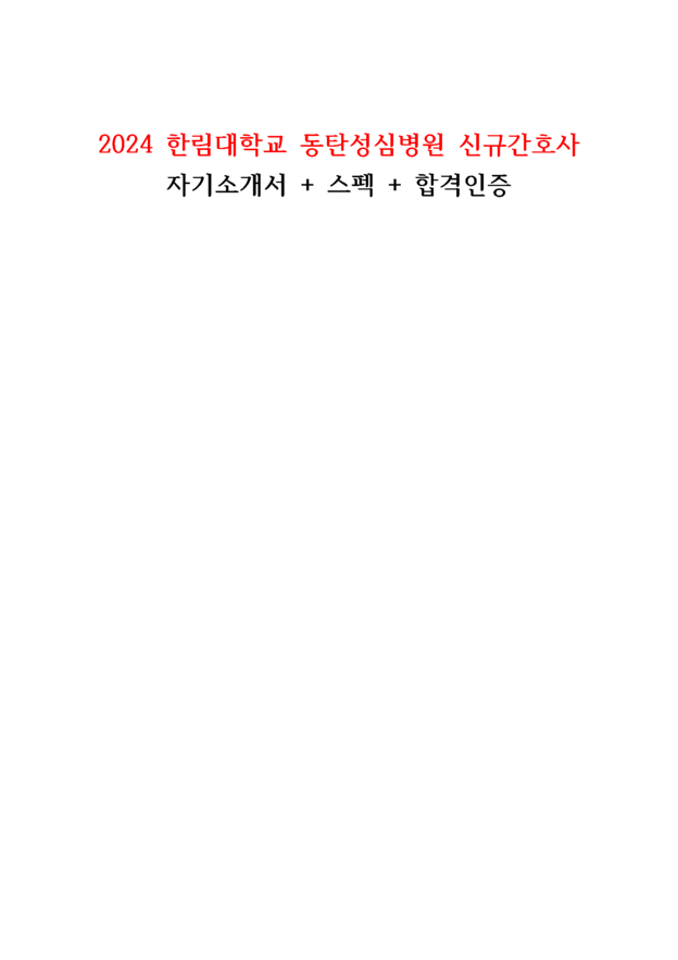 "2024 한림대학교 동탄성심병원 신규간호사 자기소개서+스펙+합격인증"에 대한 내용입니다.