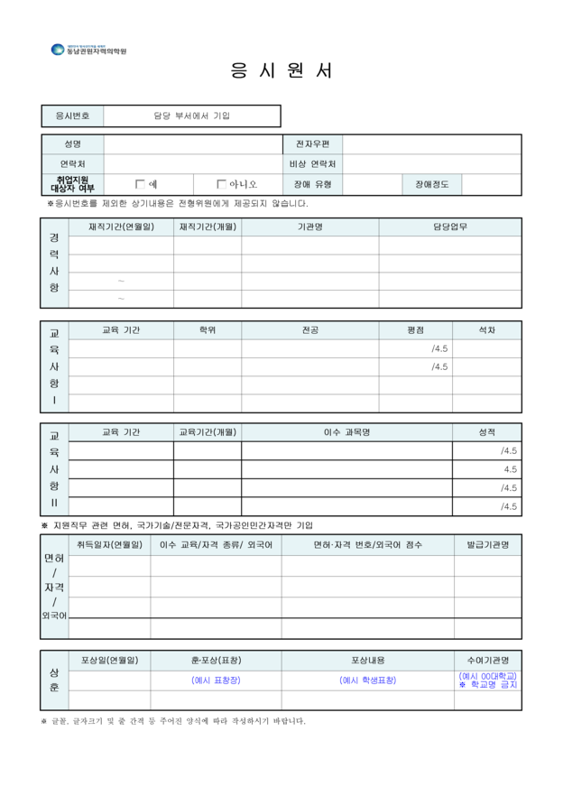 • · 자유기술 : 기타 지원자가 작성하고 싶은 내용