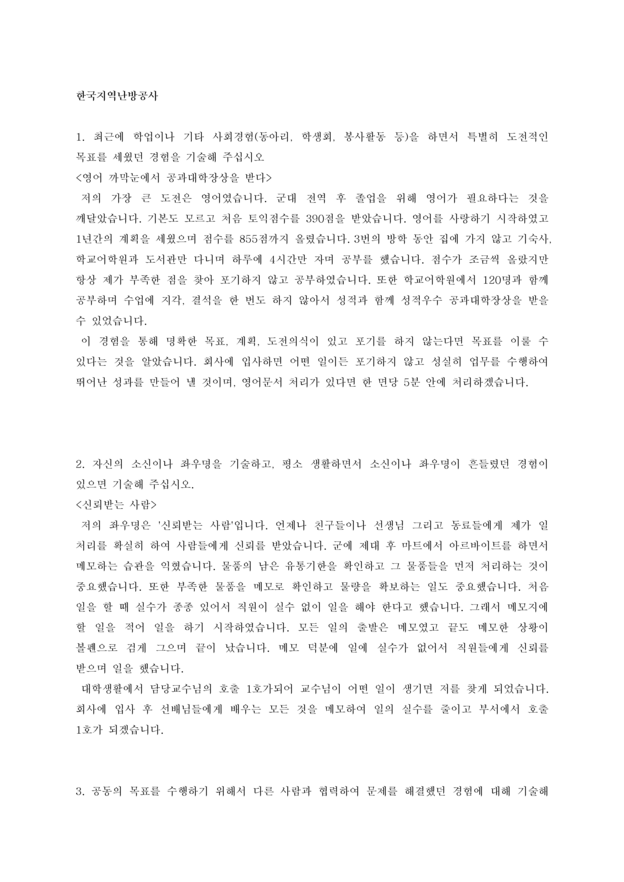 "한국지역난방공사 합격 자기소개서"에 대한 내용입니다.
