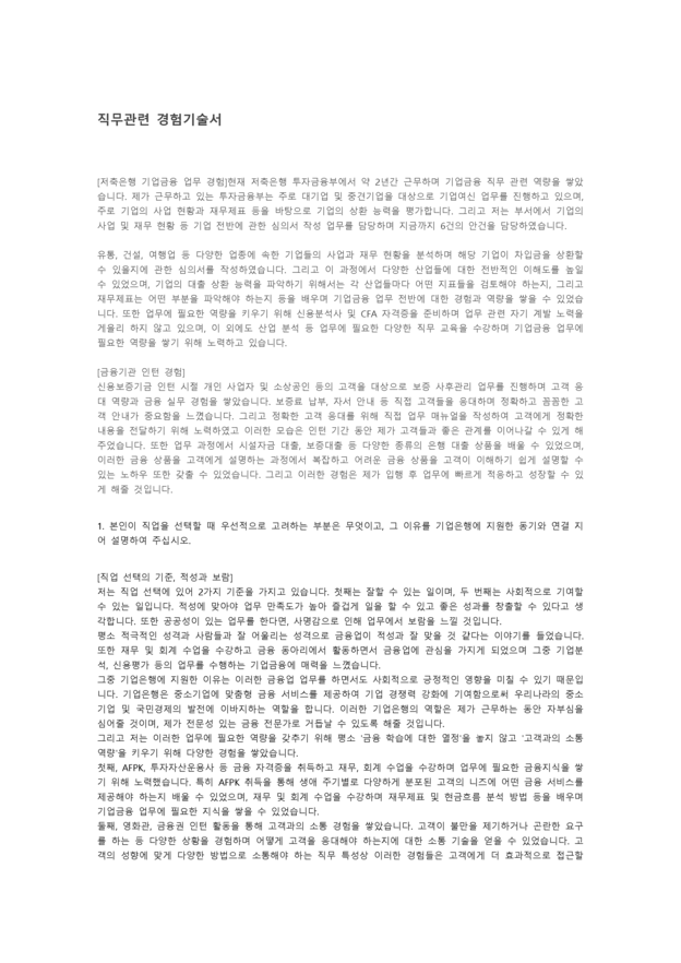 • · 본인이 직업을 선택할 때 우선적으로 고려하는 부분은 무엇이고, 그 이유를 기업은행에 지원한 동기와 연결 지어 설명하여 주십시오.