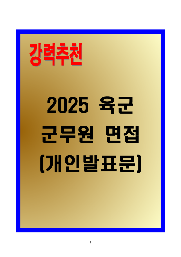 "[고득점] 2025 육군 군무원 면접 개인발표문"에 대한 내용입니다.