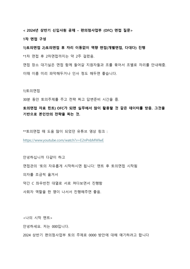 "2024년 상반기 GS리테일 편의점사업부(OFC) 면접 질문 후기(토의면접, 역량면접 팁, BGF리테일에도 적용가능)"에 대한 내용입니다.