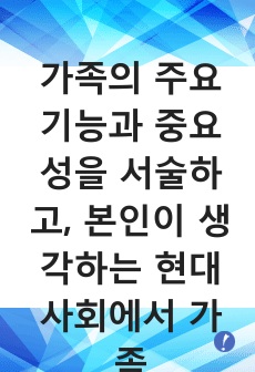 가족은 성적 기능과 자녀 출산의 기능을 비롯하여, 자녀 양육 및 사회화의 기능, 종교적 기능, 정서적 안정과 휴식의 기능, 보호의 기능 등에 이르기까지 매우 다양한 기능들은 수행한다. 과거에는 이 모든 기능을 가족이 해왔지만 현대에 이르러 사회가 산업화, 전문화 되면서 이러한 기능들이 대부분 사회의 전문기관으로 이행되었다. 예를 들자면 자녀의 교육은 학교에서, 가족원에 대한 보호는 경찰과 병원 등에서 대행하게 되었다. 이처럼 가족의 기능이 축소된 것은 사실이나 자녀의 출산, 양육 및 사회화, 정서적 안정과 휴식의 기능은 현대 가족에서도 여전히 수행되고 있을 뿐 아니라, 오히려 강화되고 있다. 따라서 가족에 대한 연구는 소홀해서는 안될 우리의 과제이다.